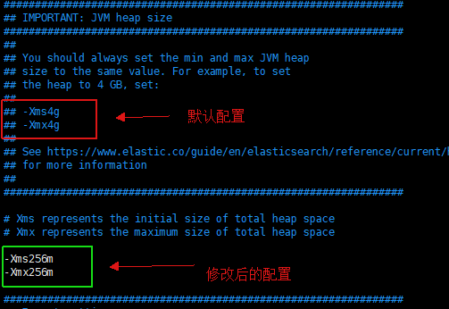 切换到/usr/local/elasticsearch/es1/config目录下,找到jvm.options文件