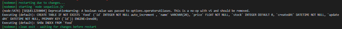 Fruit.sync({force: true}).then(()=>{// force强制同步,表存在更新配置没作用,需要把旧的删除