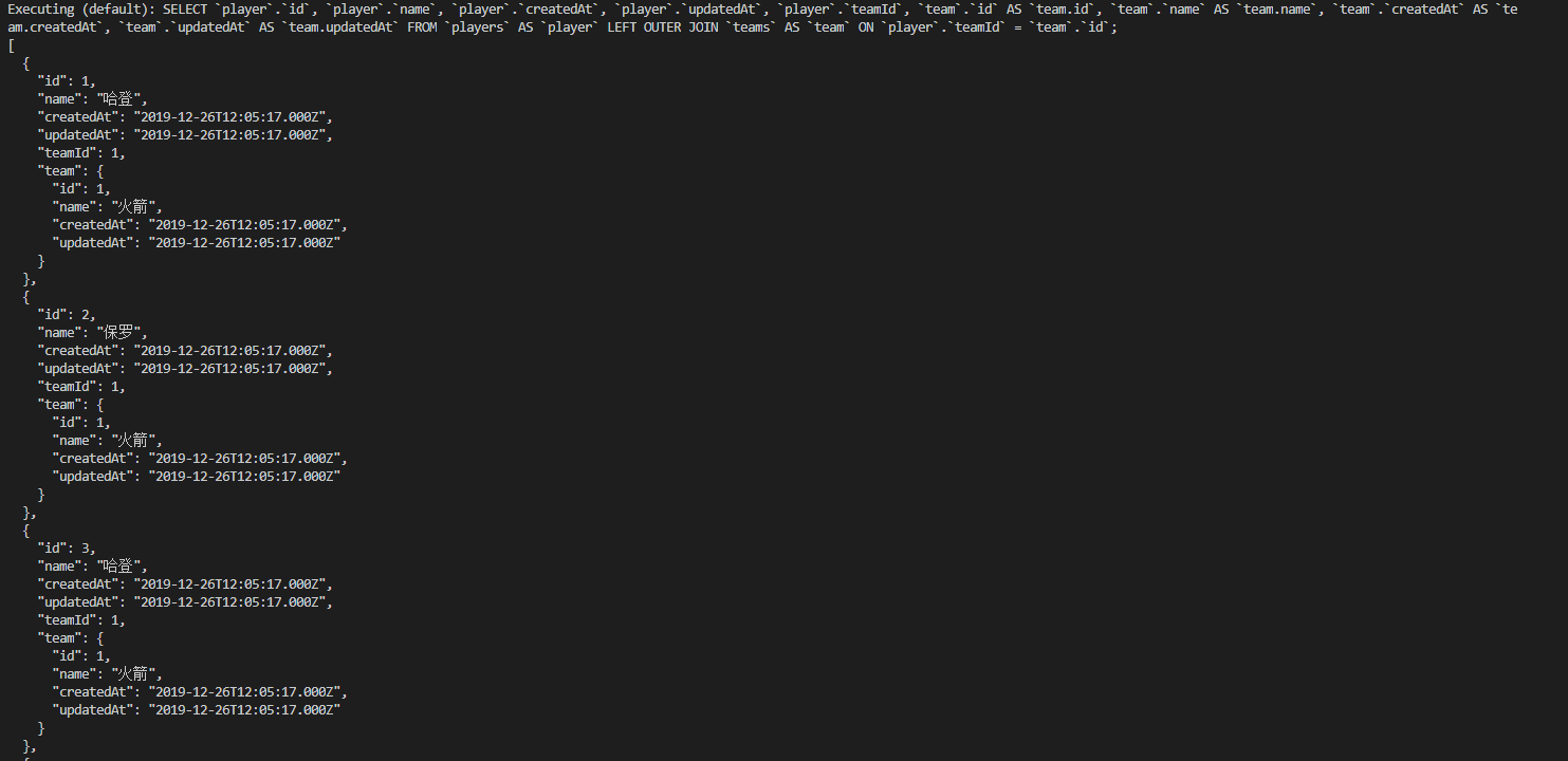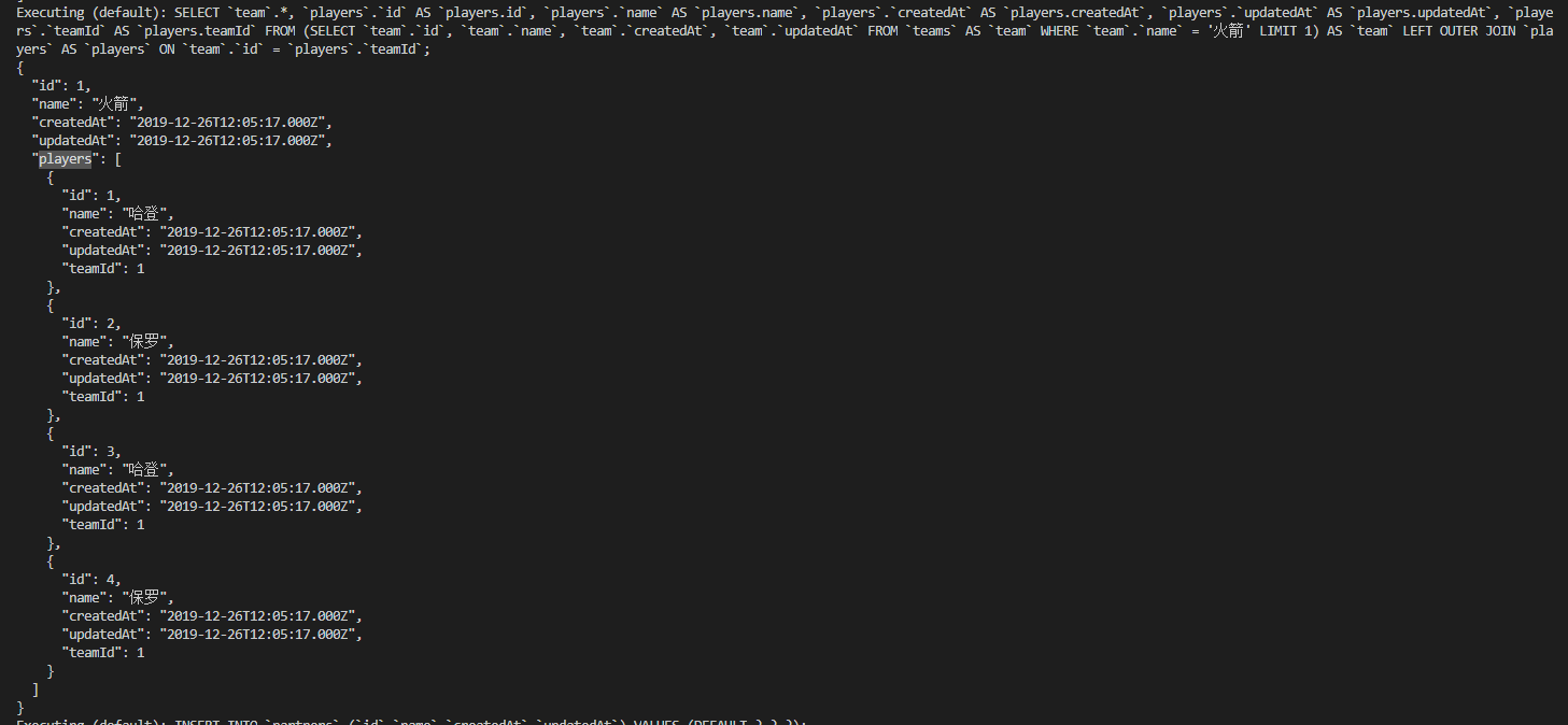 基本的sql表已经创建完成了,现在开始往表中添加数据,我们可以在sync中create一个数组数据。 如果这当中修改了配置选项,我们需要重新创建新表,删了旧表,则再sync 设置 {force: true}就行了,才能修改有效。