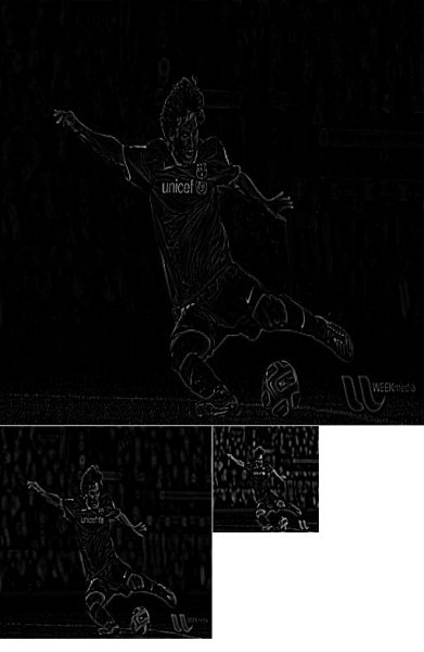 记住,higherreso2不等于higherreso,因为一旦降低了分辨率,就会丢失信息。下面的图像是3层的金字塔从最小的图像在前面的情况下创建。与原图对比: