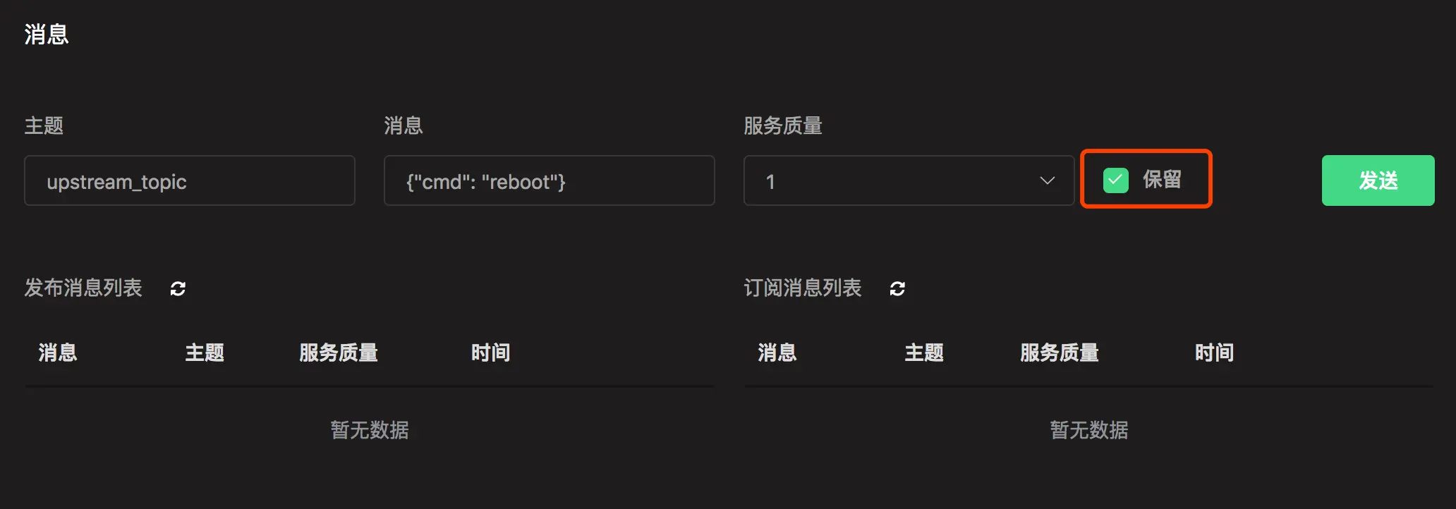 ## 发布空 retain 消息时 (清除)