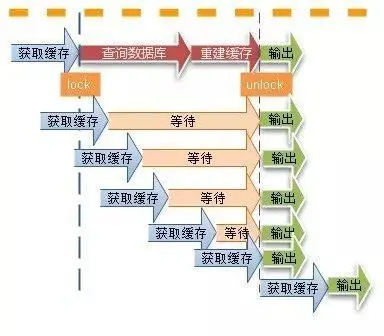 缓存过期后将尝试从后端数据库获取数据,这是一个看似合理的流程。但是,在高并发场景下,有可能多个请求并发的去从数据库获取数据,对后端数据库造成极大的冲击,甚至导致 “雪崩”现象。此外,当某个缓存key在被更新时,同时也可能被大量请求在获取,这也会导致一致性的问题。那如何避免类似问题呢?我们会想到类似“锁”的机制,在缓存更新或者过期的情况下,先尝试获取到锁,当更新或者从数据库获取完成后再释放锁,其他的请求只需要牺牲一定的等待时间,即可直接从缓存中继续获取数据。