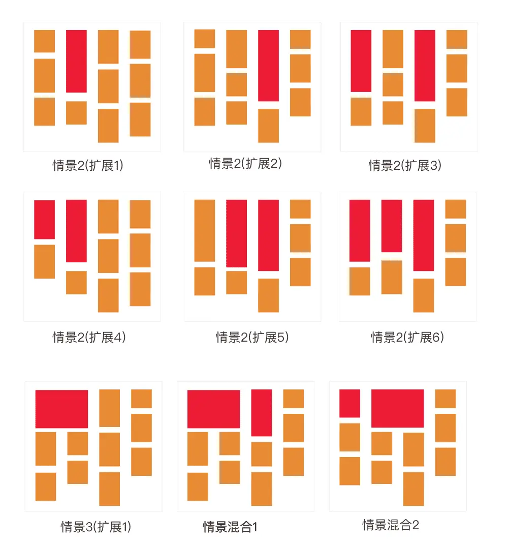本文将介绍这种扩展瀑布流的四列实现场景,适用基础场景如下: