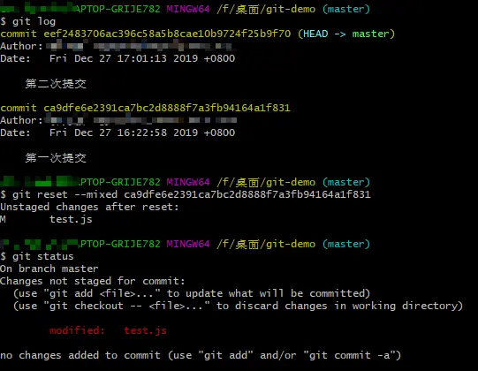 git reset(撤销操作)
