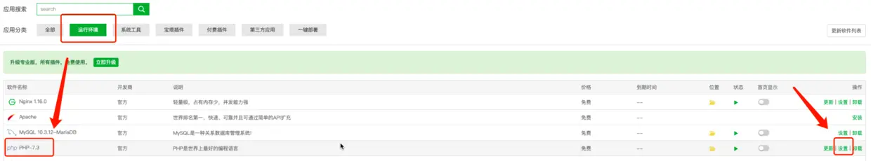 2.线上 线上嘛,本农配置的是宝塔,直接在【软件商店】-【运行环境】,找到当前php版本