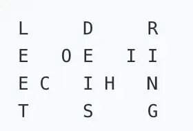 之后,你的输出需要从左往右逐行读取,产生出一个新的字符串,比如:"LCIRETOESIIGEDHN"。