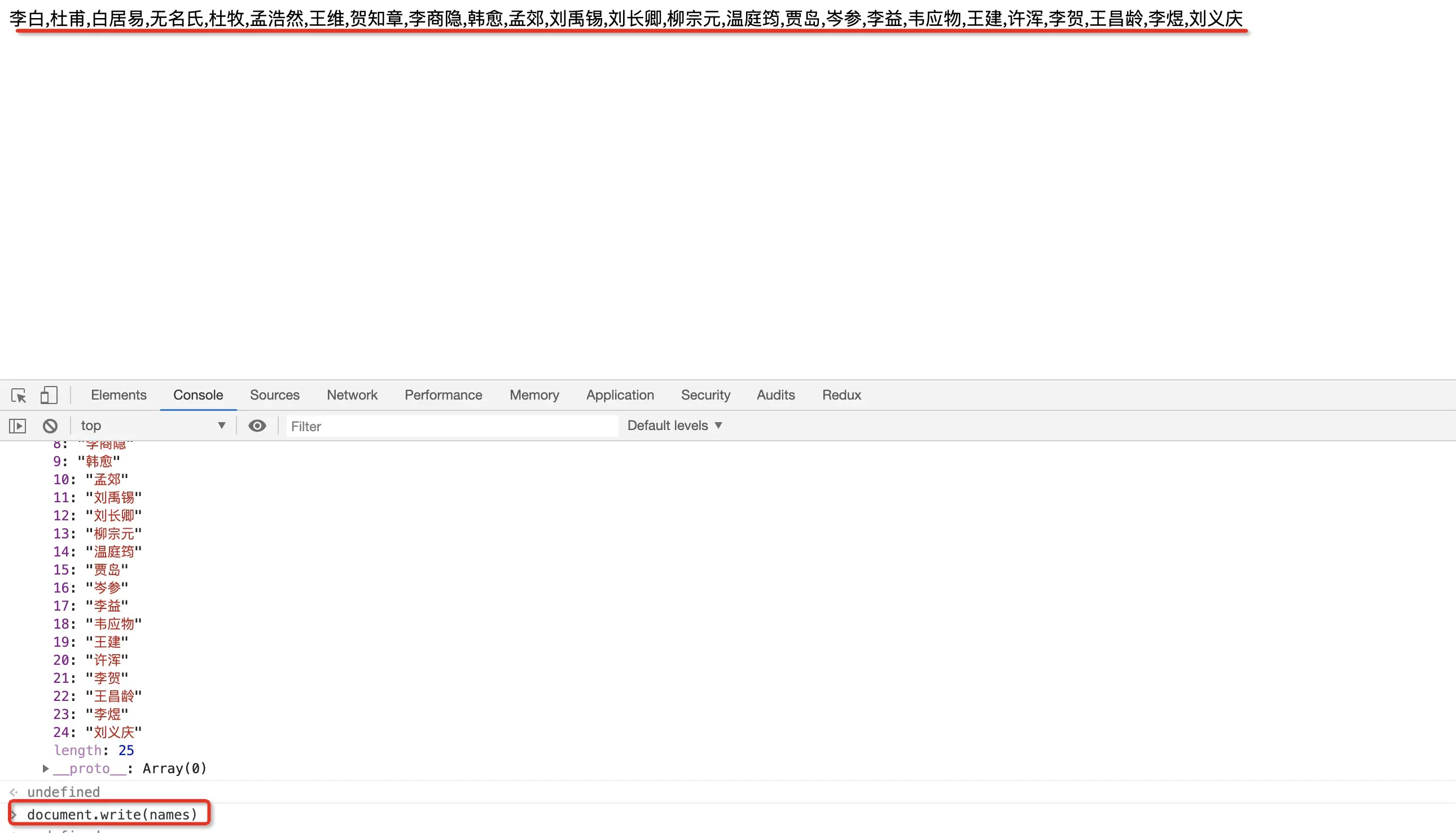 document.write(names)