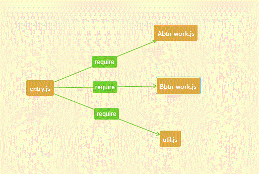 假设 Abtn-work.js Bbtn-work.js util.js都是非常大的文件 因为 Abtn-work.js Bbtn-work.js 都不是entry.js必须有的,即可能发生的操作,那么我们把 他们利用异步加载,当发生的时候再去加载就行了
