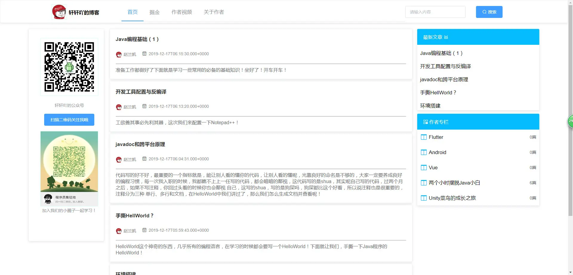 没有什么复杂的功能,界面挺简洁! 大家也看到了页面上有一个作者专栏,大概分了分,以后还会细分,比如Android适配,音视频开发,NDK开发,代码规范啥的,最重要的一点,就是能坚持下去! 现在技术更新换代那么快,对于技术的选择上,多学一点总归没有坏处的!