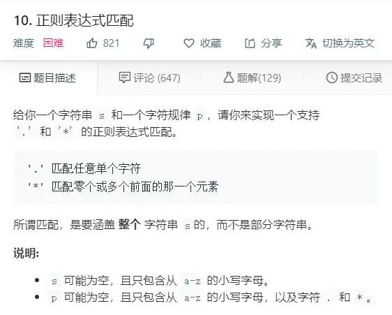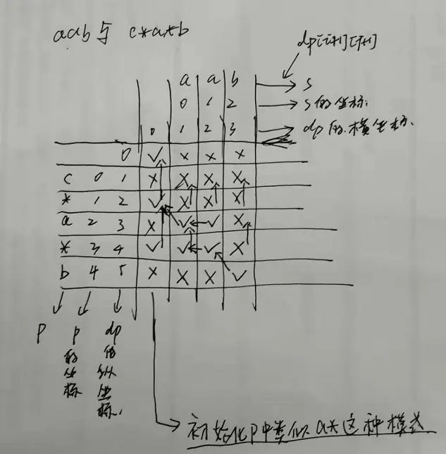 - dp[i+1][j+1]表示s中长度为i的子串与p中长度为j的子串是否匹配,这里s中长度为i的子串表示s.substring(0, i)