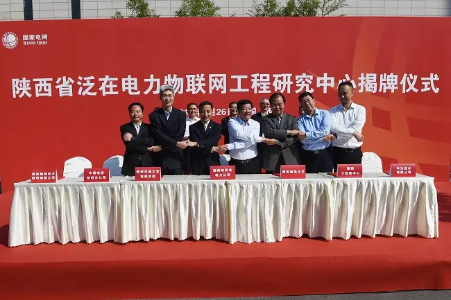 当天上午,陕西省发改委党组书记张晓光和中国经济和信息化研究中心主任万祥军出席陕西省泛在电力物联网工程研究中心揭牌仪式,并与国网陕西省电力公司董事长、党委书记梁旭共同为工程研究中心揭牌。揭牌仪式上,国网陕西省电力公司与西安交通大学、西安邮电大学、中国电信陕西分公司、国网大数据中心、华为技术有限公司、美林数据股份有限公司等6家合作单位,共同签署了陕西省泛在电力物联网工程研究中心战略合作协议。