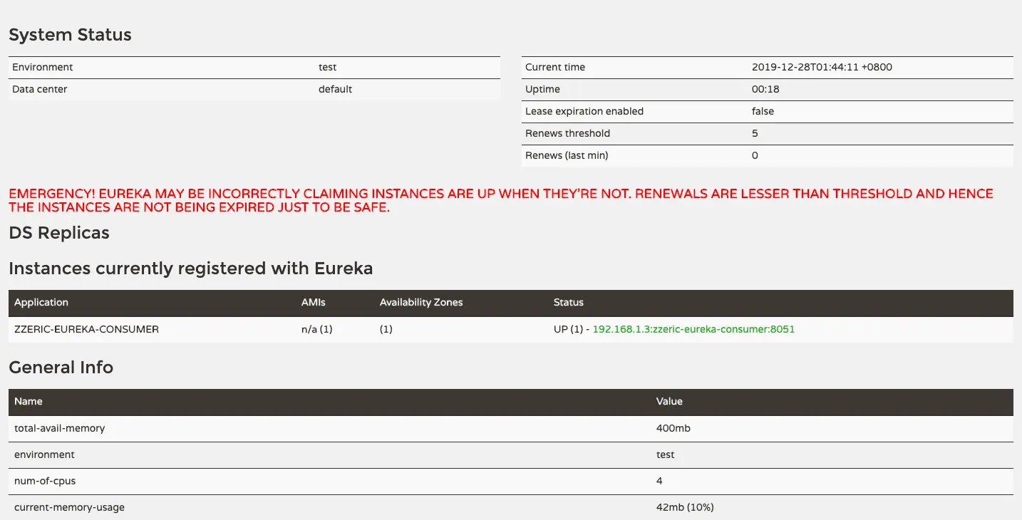 实验之前先对eureka管理页面的各个参数做个介绍: