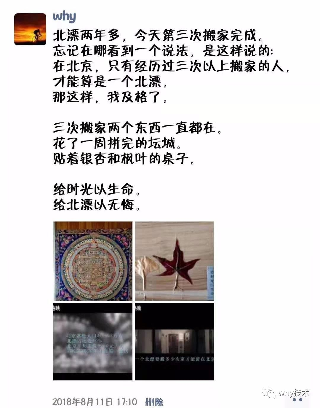 作为一个北漂最想家的时候是节日的时候,特别是中秋节,2018年的中秋节我站在北京西单的天桥上,看着桥上人来人往,桥下车流涌动,四处洋溢着节日的气息,可惜我无心感受,因为我是一个异乡人。站了很久,我发了一个朋友圈: