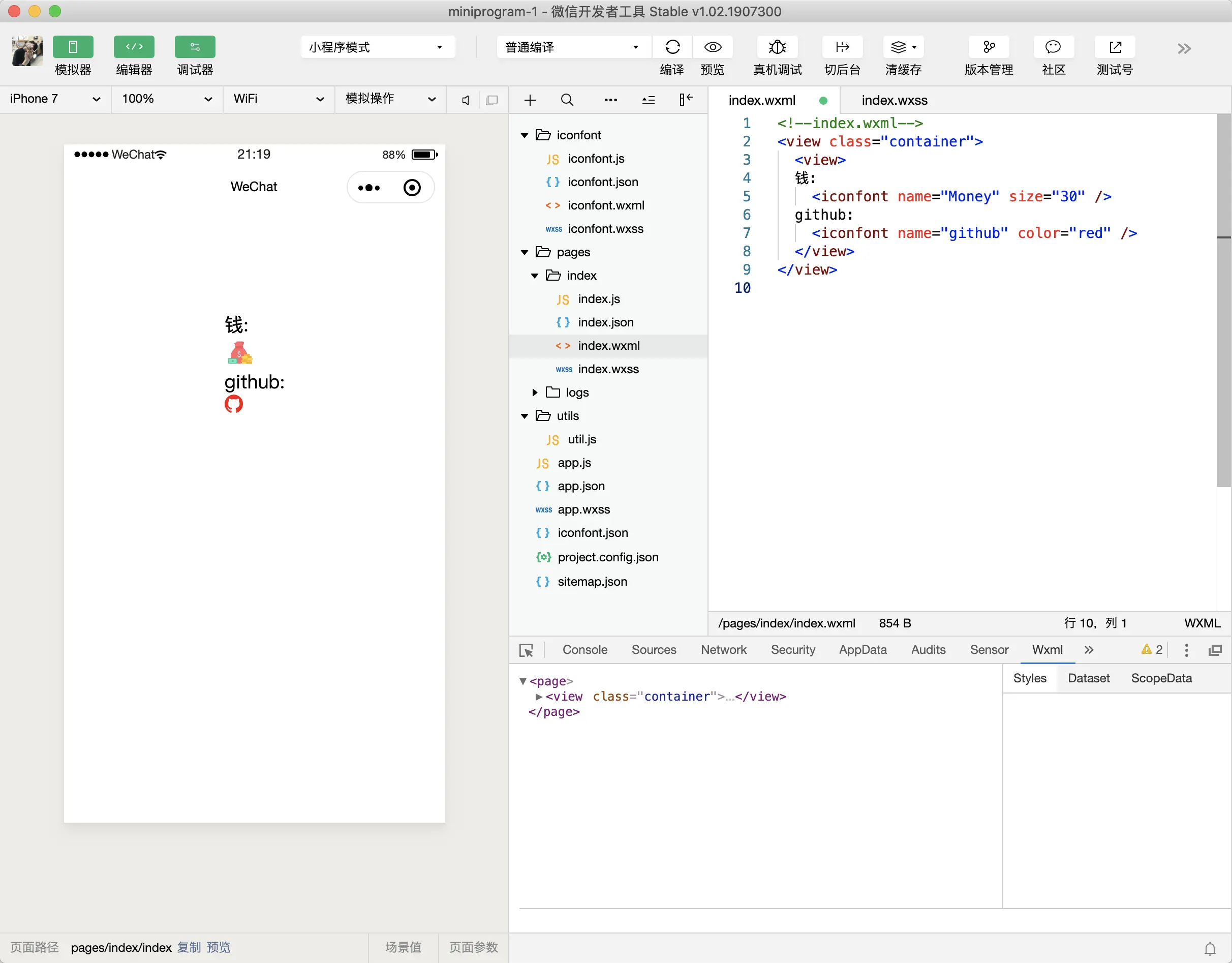 同时我们打开iconfont文件夹下的iconfont.wxml文件,也可以发现里面就是生成了一个个view标签然后设置上背景图片.