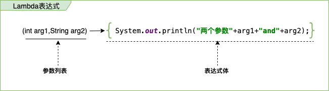(p1, p2) -> System.out.println(“多个参数: " + p1 + ", " + p2);