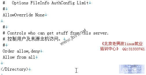 DocumentRoot /usr/local/www/data<directory "/usr/local/www/data">Options Indexes FollowSymLinksAllowOverride NoneOrder allow,denyAllow from all</directory>