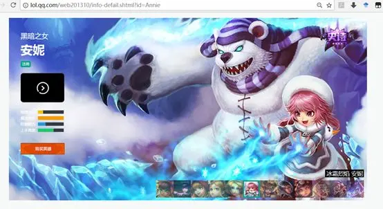 ,地址中的“Annie”是这个英雄的英文名,若要访问其他英雄界面,只需要更改英文名就可以了。