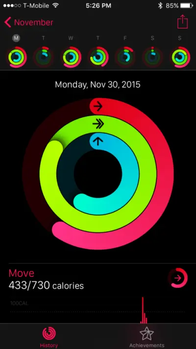 甚至彭博社的 app 也是如此:交易员在负极性下可以更快捕获信息。同理,iOS 的 Stock app 和 Activity app 也是这样,这两款 app 早在黑暗模式推出之前就使用暗色 UI 了。