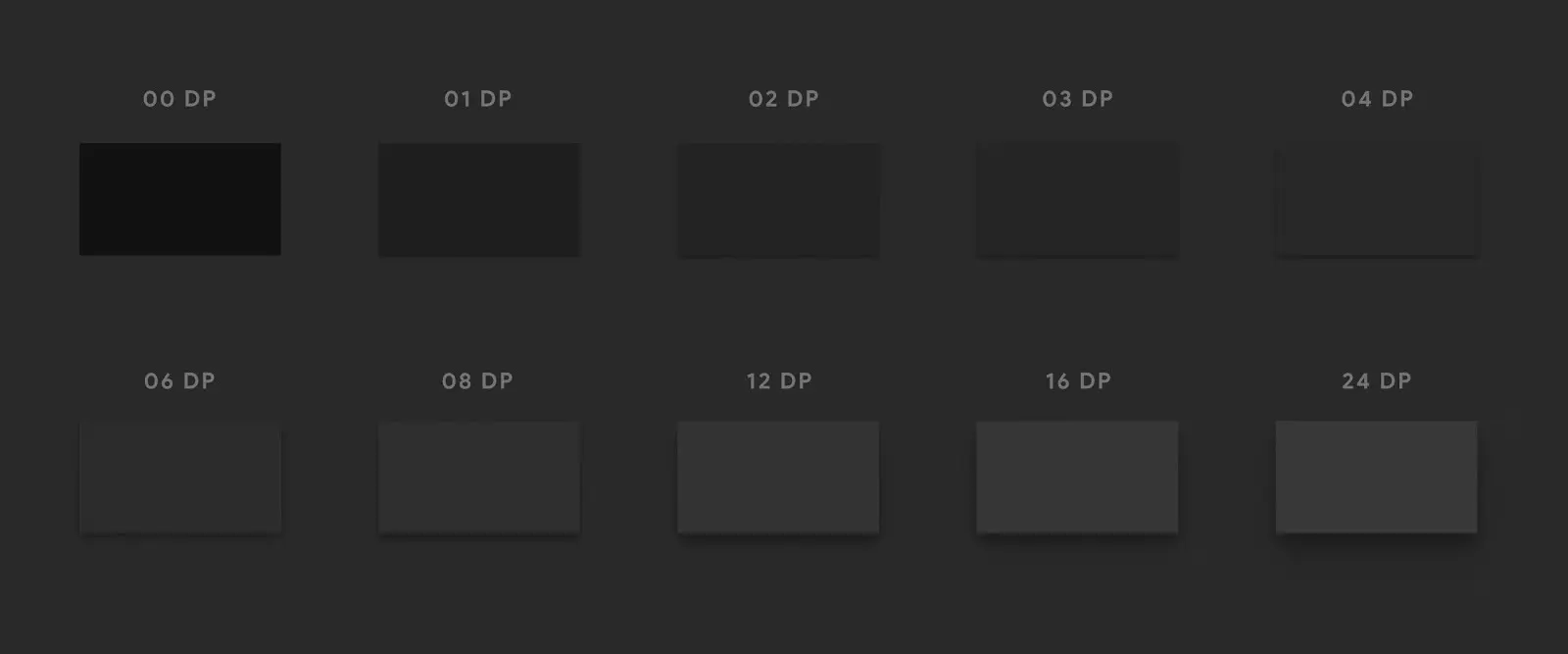 在明亮模式下,你很可能会使用阴影来表现视觉层次。这在黑暗模式中是不可行的,因为你根本看不到它们。相反,你应该使用灰色遮罩区分内容的不同层次。