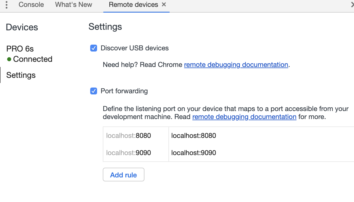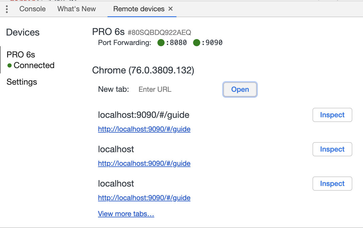 - 选中设备后后点击想要调试的链接地址右边的 inspect
