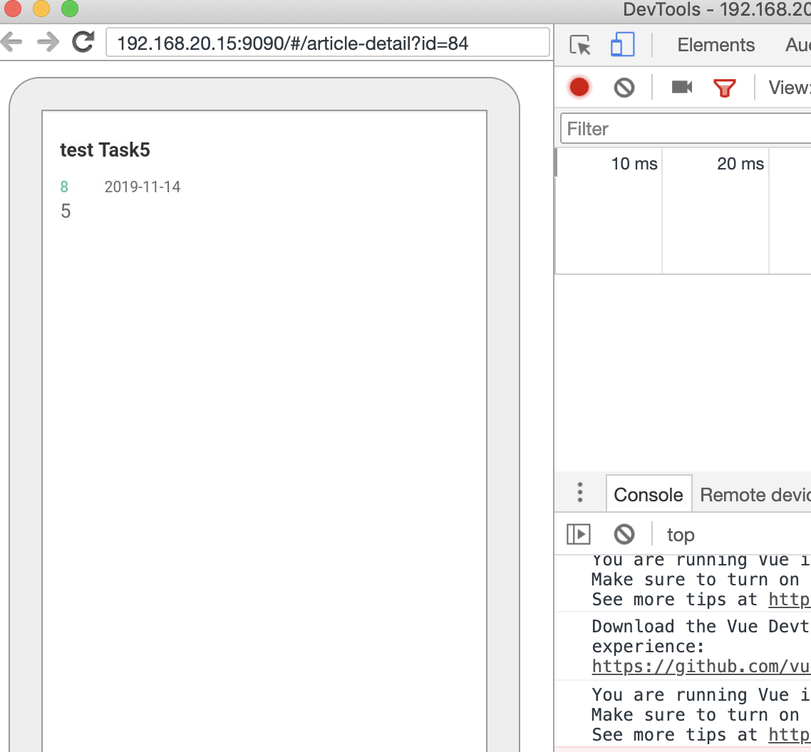 - 会弹出一个窗口,是pc端模拟移动端的样式,并且手机和pc端同步,可以查看手机上点击的请求以及log显示