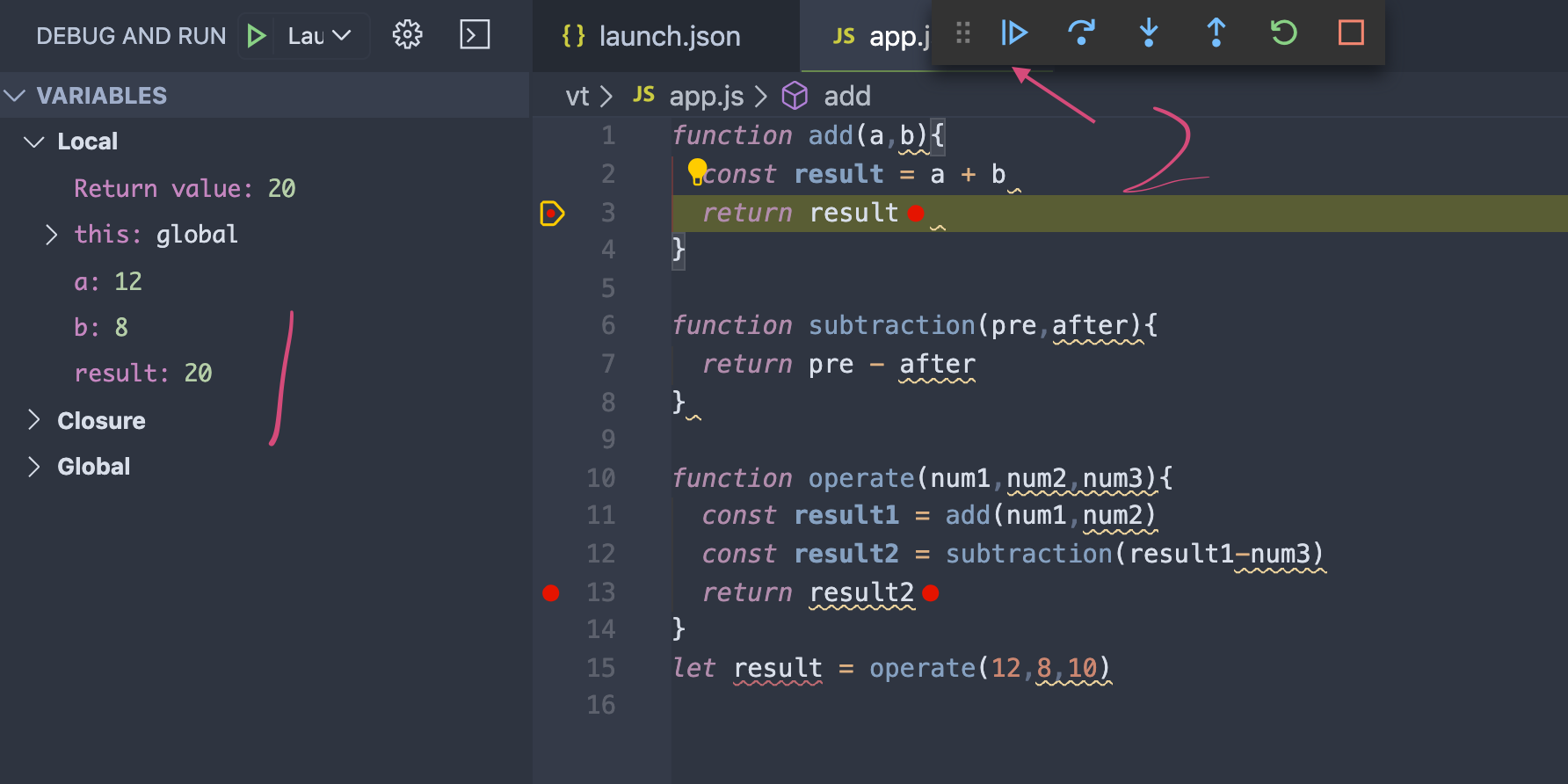 - 在vscode 中打开debug ,f5 + 选择node.js