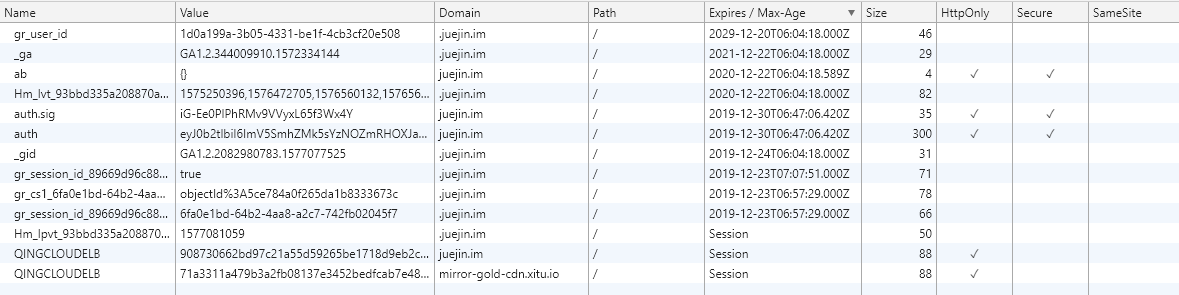 下图为登录腾讯云服务端响应头截图,cookie设置了相关的属性:expires、path等。response headers服务端可以设置cookie 的所有选项:expires、domain、path、secure、HttpOnly。
