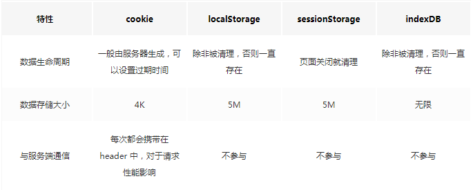4、webStorage、cookie 和 IndexedDB之间的区别