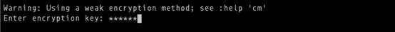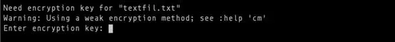 用vim加密文件,只需键入:X即可。它会要求你设一个密码,如下: