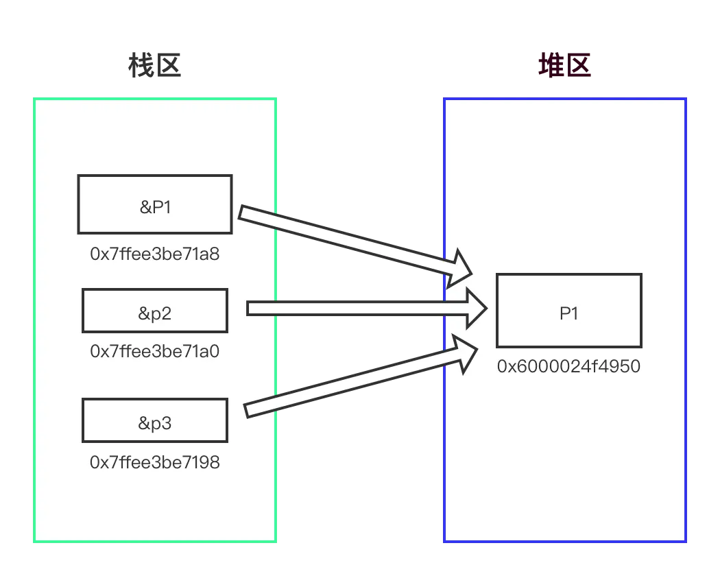 这里为什么p1相同的情况下,经过init后的p2,p3 的地址都不一样呢,我们要用这个图来分析: