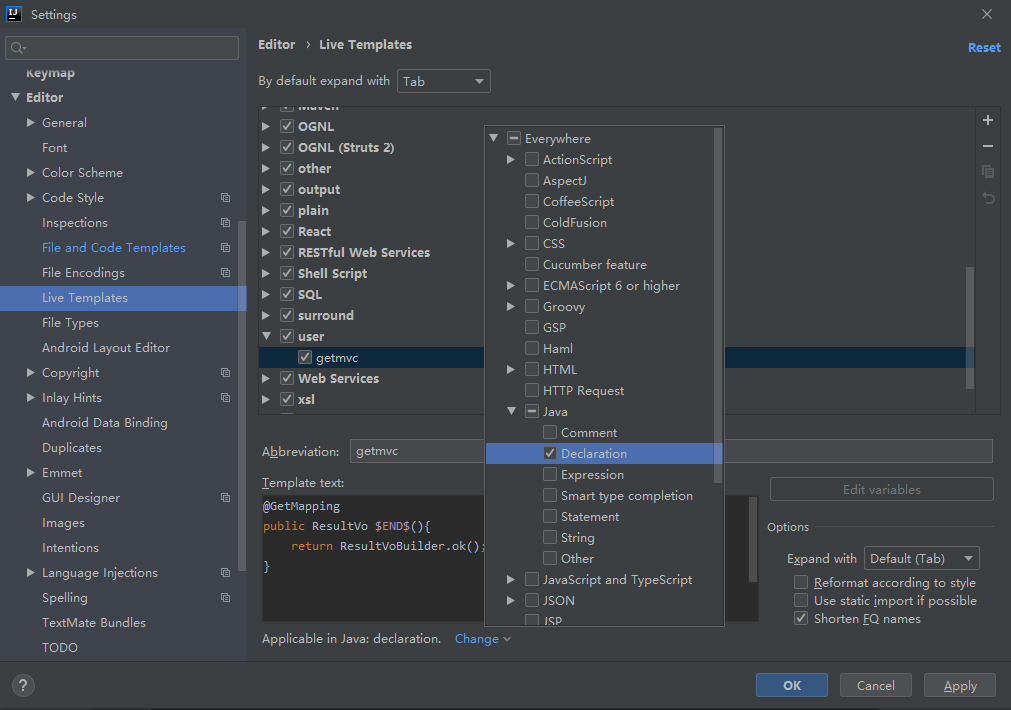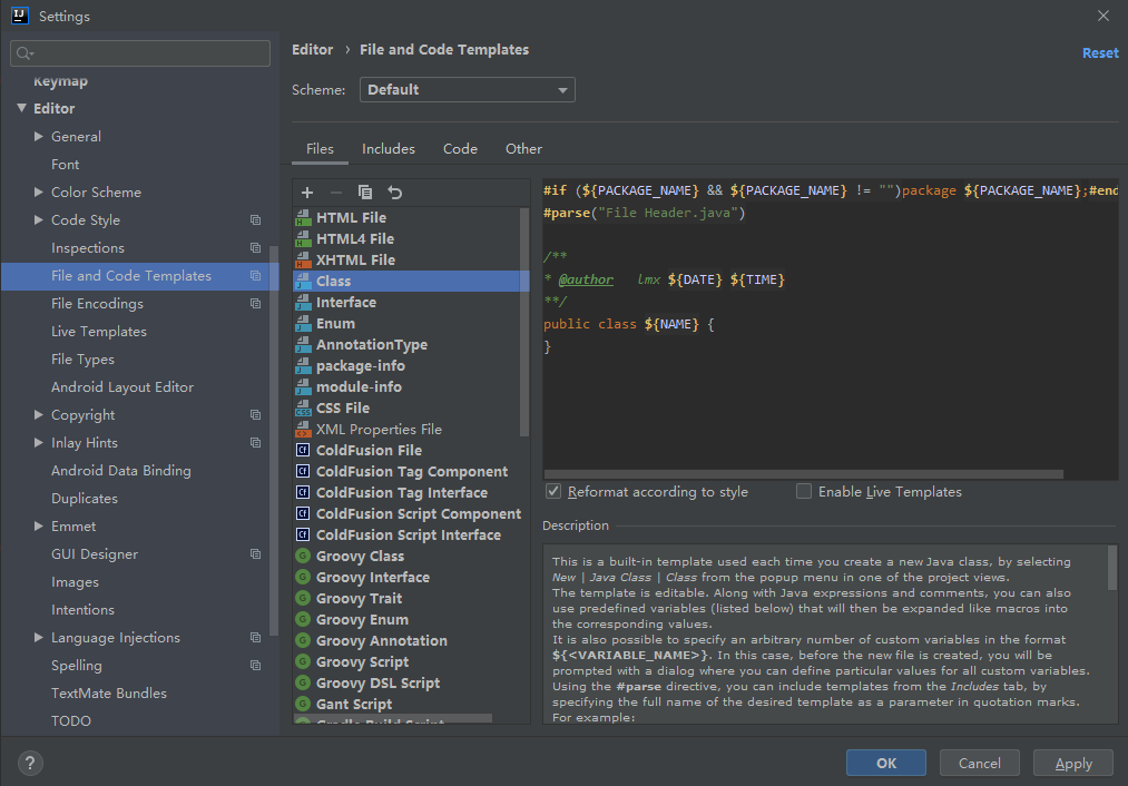 2. 类注释 File->Settings->Editer->File and Code Templates