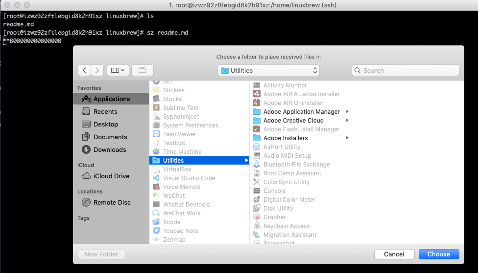 sudo wget https://raw.githubusercontent.com/xjh22222228/iterm2-zmodem/master/iterm2-recv-zmodem.sh