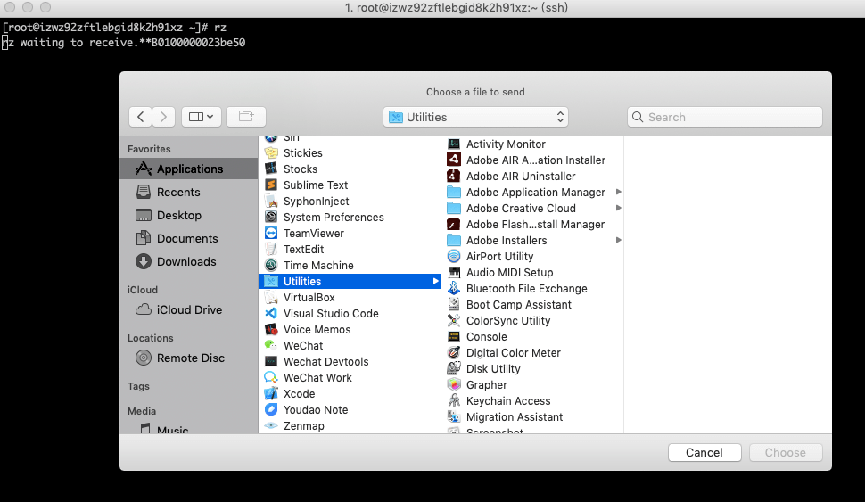 sudo wget https://raw.githubusercontent.com/xjh22222228/iterm2-zmodem/master/iterm2-send-zmodem.sh