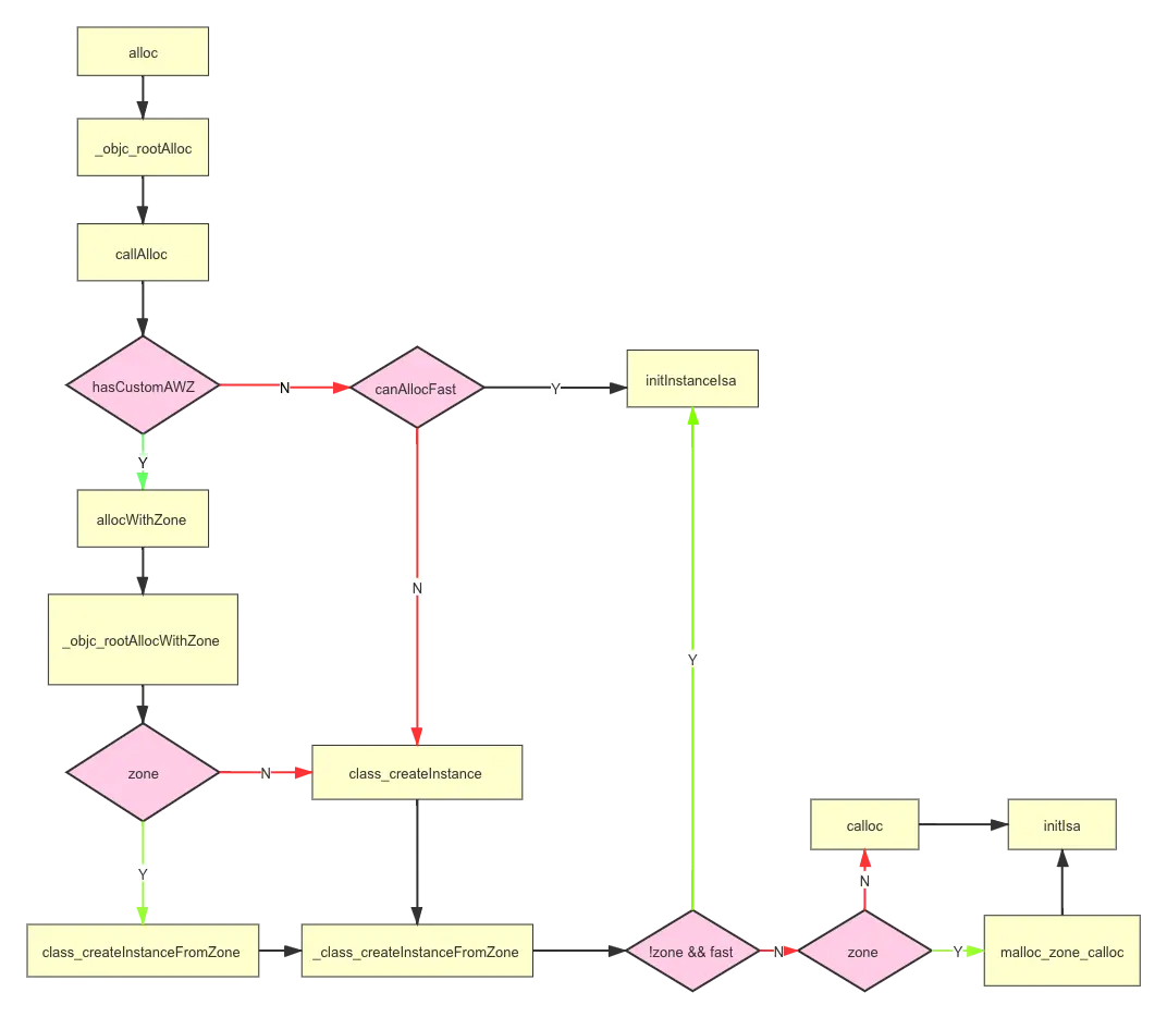libobjc.A.dylib这个动态库,下载objc的源码opensource.apple.com/tarballs/ob…,并配置,最终得出alloc流程图: