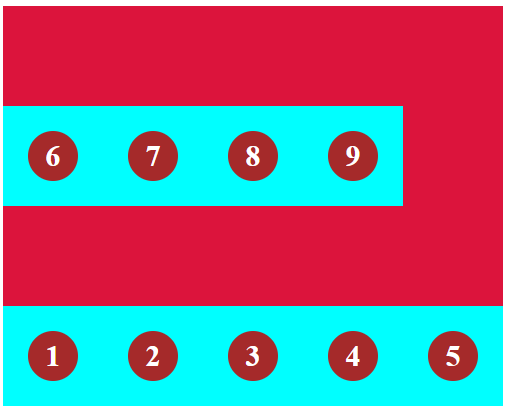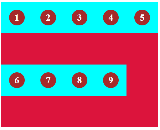 为了演示flex-wrap,我们添加9个item(此时flex-direction为默认值row,除非特别声明,否则我们在演示其一个flex属性时,会将其他flex属性设置为默认值)