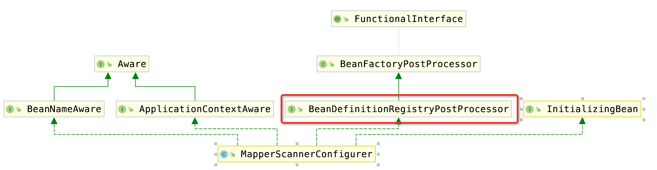 至此我们完成Mapper注入到Spring容器中,至于Mybatis后面的东西暂不去讨论了。整个过程中出现的一个从未出现过的接口BeanDefinitionRegistryPostProcessor,接下来我们一起来探究下这个类;