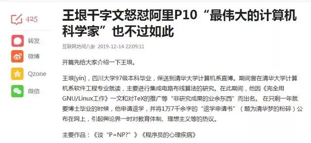 纵观华语互联网历史,好像还没有人能在diss王垠之后全身而退,看来又成事实。按照王垠的性格,肯定少不了再次回复的,我们吃瓜继续。