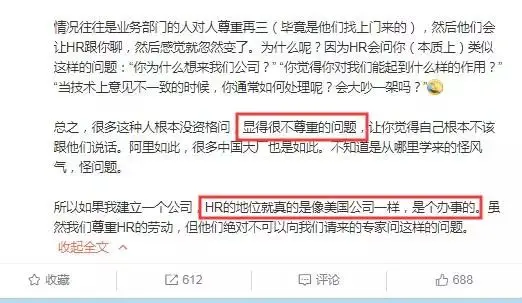 文中再次质问。“业务部门的人对人尊重再三(毕竟是他们找上门来的),然后他们会让HR跟你聊,然后感觉就忽然变了。”并再次表明自己的观点,HR是个办事的,不应该干不尊重人的事。