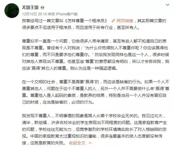 一个程序员究竟该如何被尊重如果你对这个神仙打架有什么看法,欢迎留言区留言。