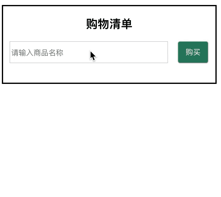 营业员也雇佣好了,下面就欢迎大家光临购物啦。我们先来看下最终demo的效果。主要的功能为,点击购买,将商品添加进列表以及点击取消购买,将商品从列表中移除。