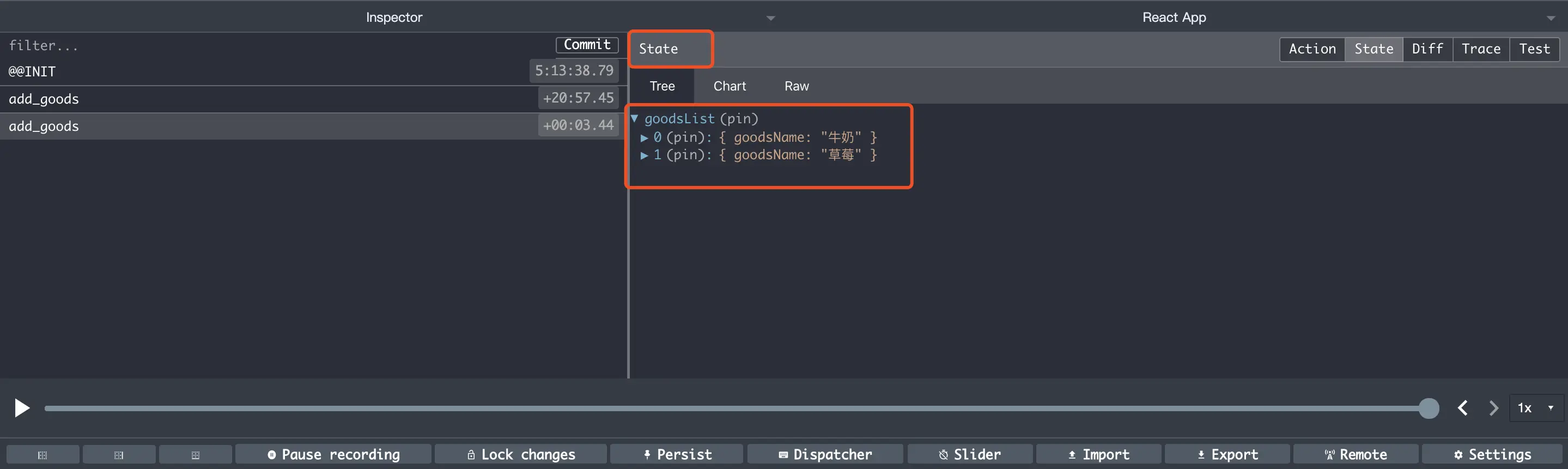 reducer接收到参数,将商品加入进购物列表。