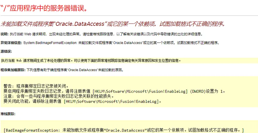 坑一:未能加载文件或程序集“Oracle.DataAccess”或它的某一个依赖项。试图加载格式不正确的程序。