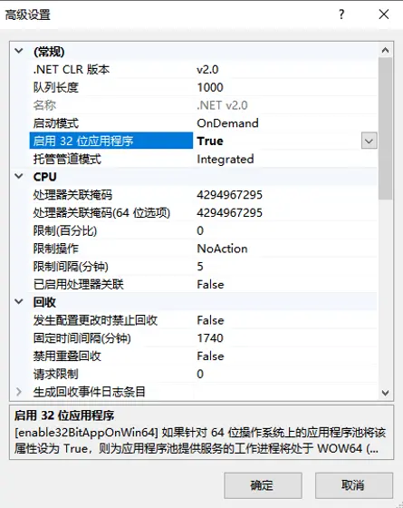 高级设置- 2.启用32位应用程序即可