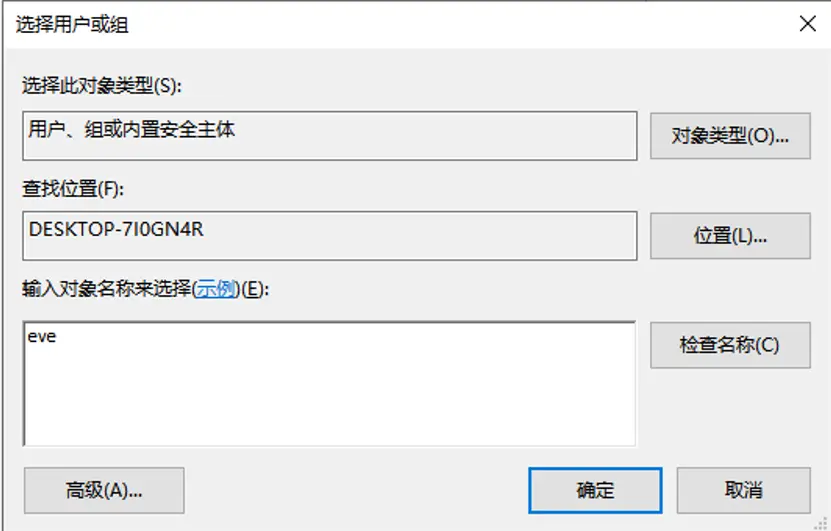 用户或组,输入eve后确定- 3.为其添加