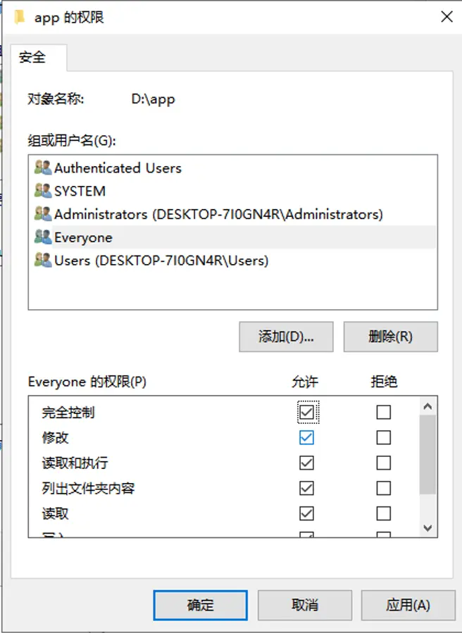 完全控制以及修改的权限- 4.并将更改应用到