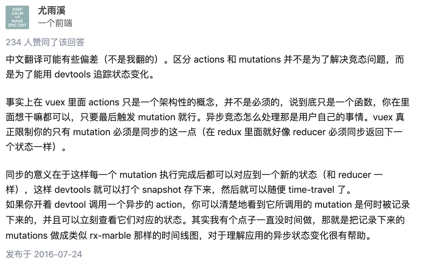 前文一直在强调状态管理库提供一种用于改变状态的机制,下面聊聊这套机制。无论是Redux或Vuex的做法都大同小异,无疑都是把状态改变的操作搞的繁琐一点。