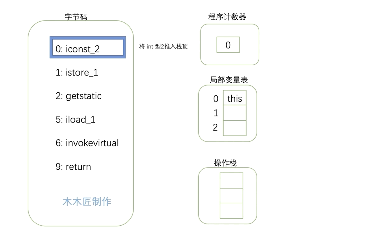 0: iconst_2:将int类型2推送到栈顶。