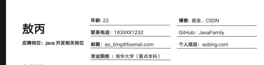 同样是黑白的色调,敖丙自己的简历是不是就相对而言会整洁很多,看起来也比较条理清晰。