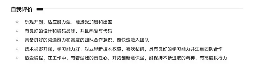 还有格式,大段大段的项目介绍都不带分段的,看着脑仁疼,你确定面试官会愿意在你这上面浪费这么多时间嘛?