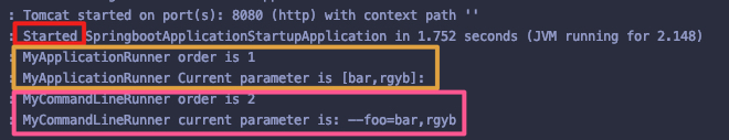 log.info("MyApplicationRunner Current parameter is {}:", args.getOptionValues("foo"));